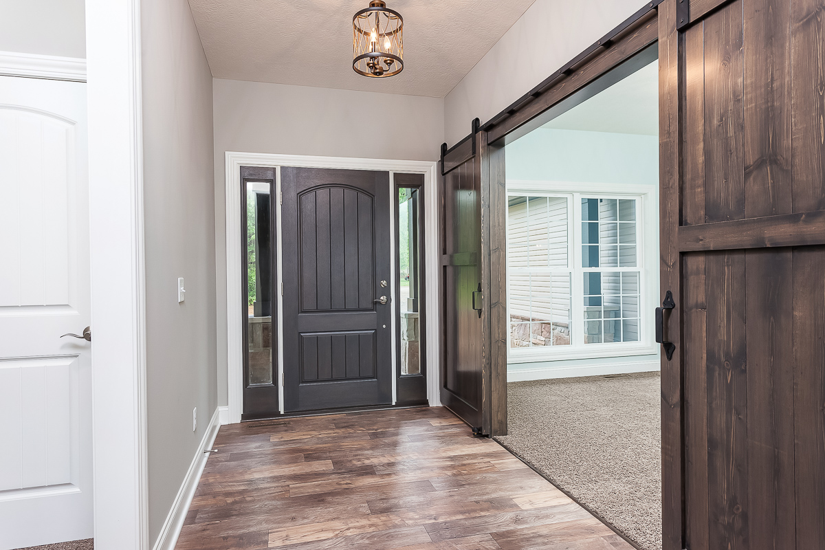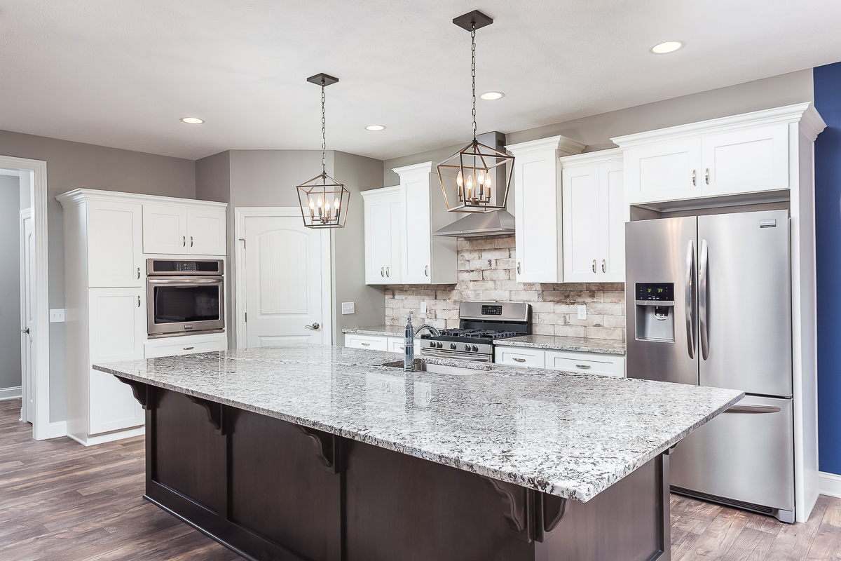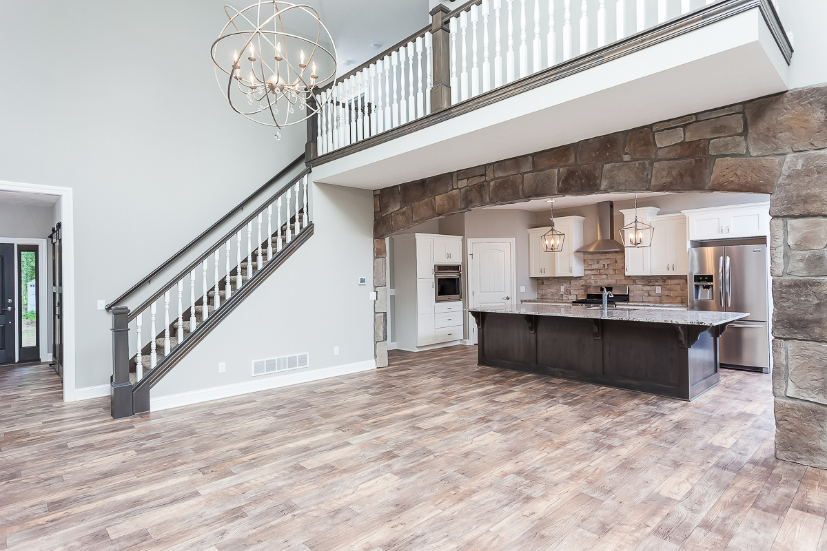 Description: The Pavin offers a 3-car garage, open concept floor plan with a 2-story great room. Custom trim work throughout with built-ins, custom cabinets, stone work, and solid surface counters. A large master suite on the first floor with a large walk-in closet and 3 bedrooms upstairs. The exterior of the home has a combination of stone and siding with a large front covered porch.