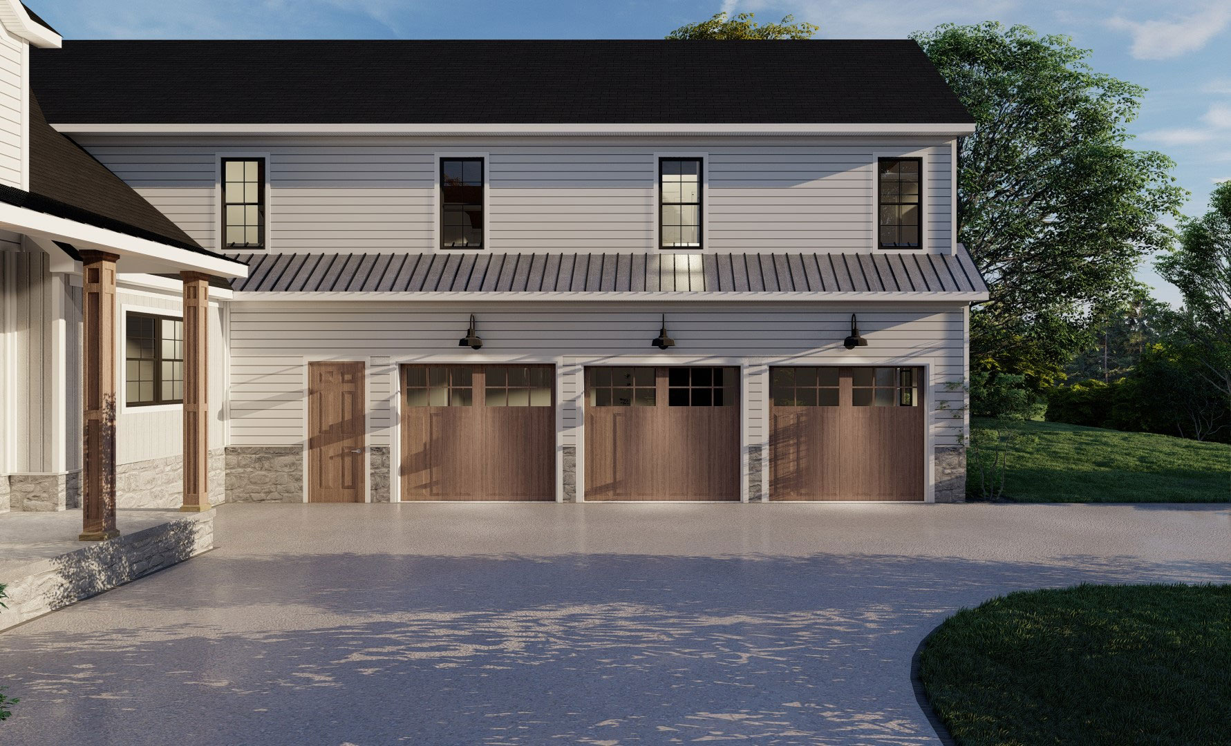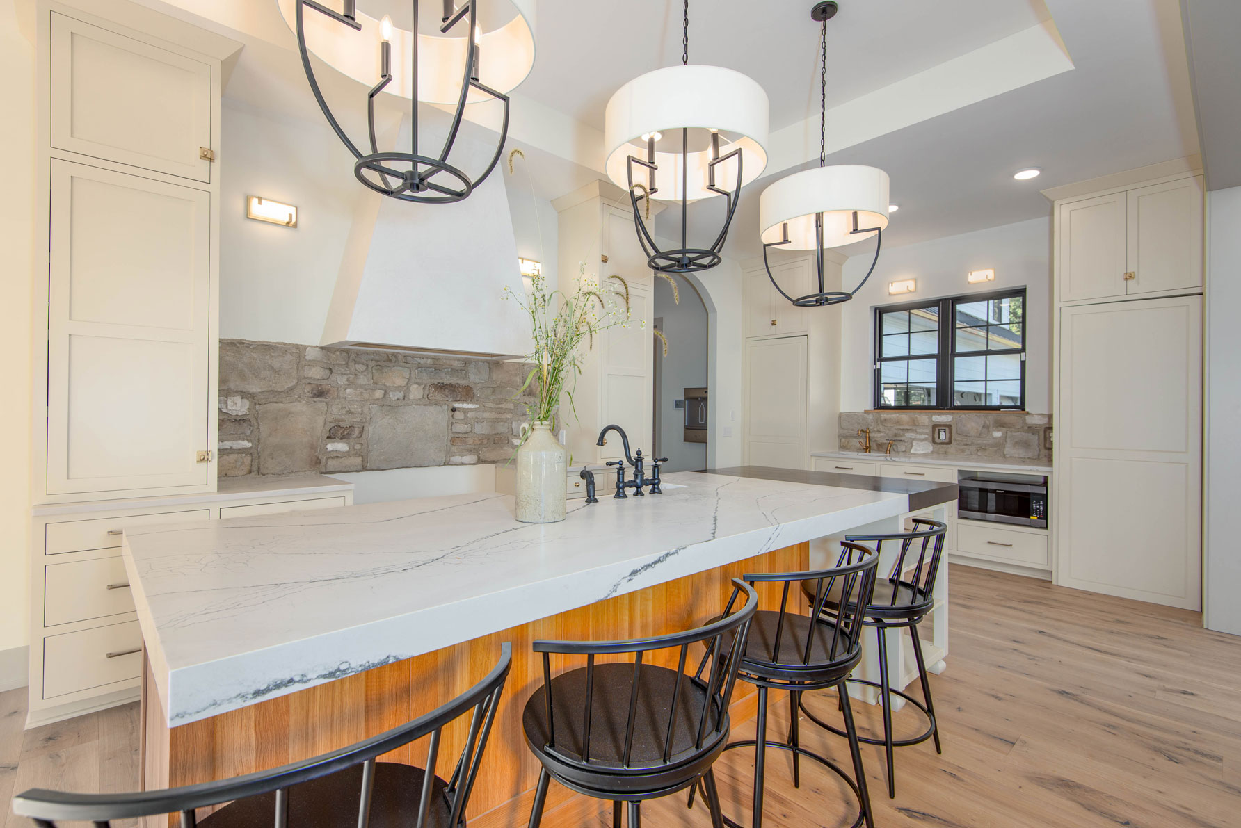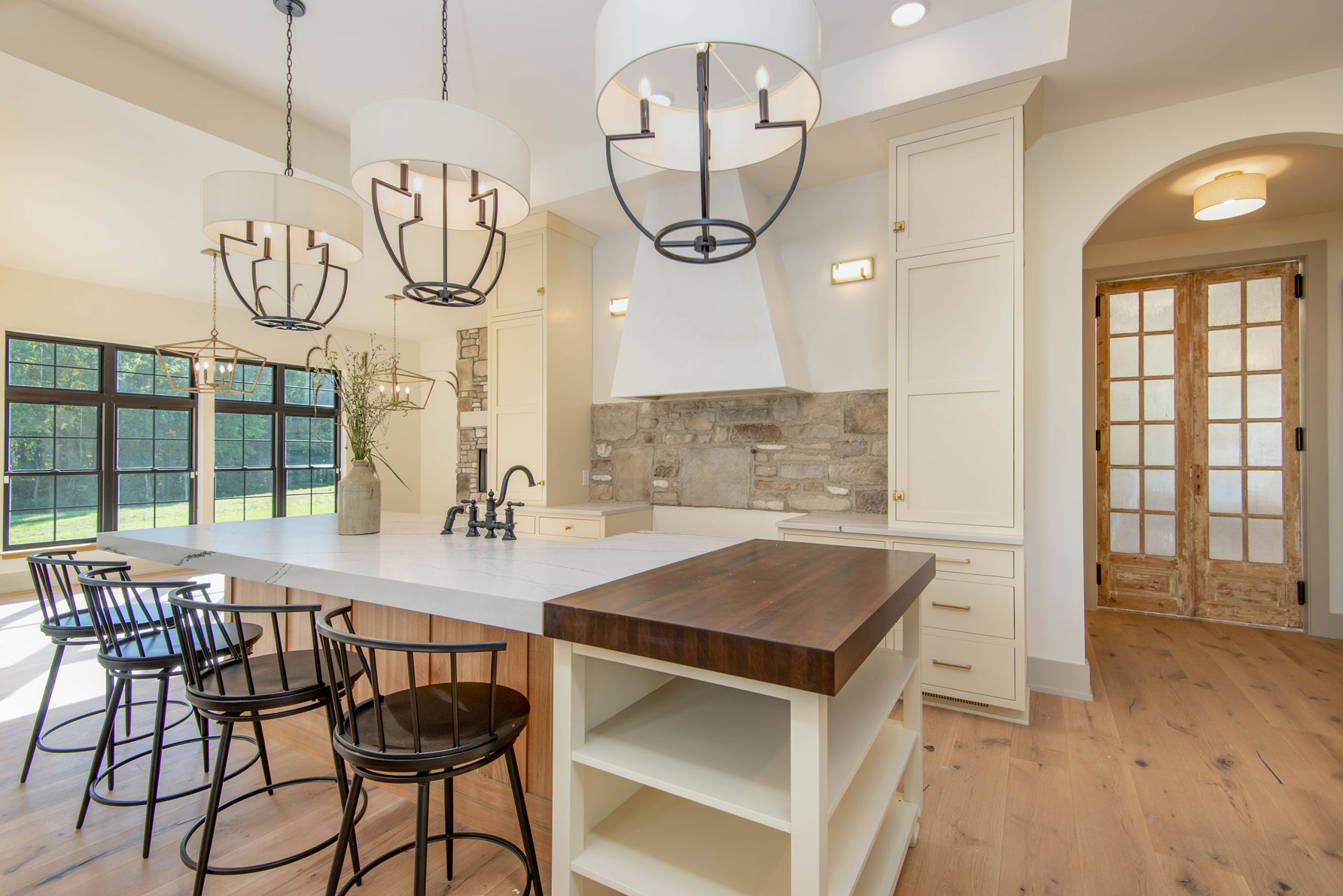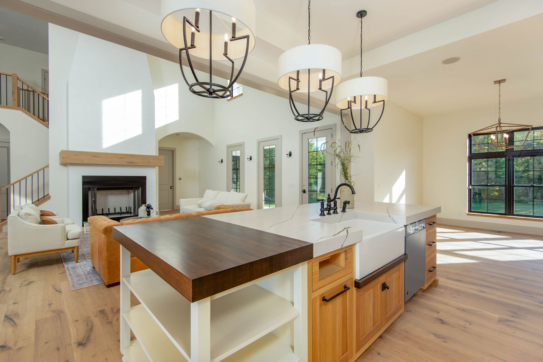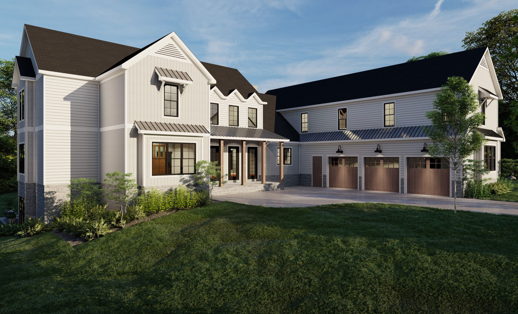 Description: Spacious English Modern Farmhouse with attached in-law suite above the garage, this home is approximately 6000 SF with the finished basement. This home offers 4 bedrooms, 4.5 baths, 3-car garage, open concept floor plan with a dirty kitchen, finished basement including a rec room, sound room and bunk room. The in-law suite adds another bedroom, full bath, kitchen, living room, office, laundry, and covered deck. The spacious 1st floor master retreat includes a walk-in closet, large zero entry custom shower and freestanding tub. Custom finishings throughout the home with built-ins, hardwood floors, custom cabinetry, brick floor and much more. The exterior of the home has a large screen porch and patio with an outdoor fireplace.